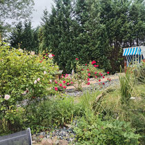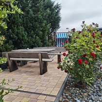 • Relaxwiese mit Gartenmöbeln & Strandkorb